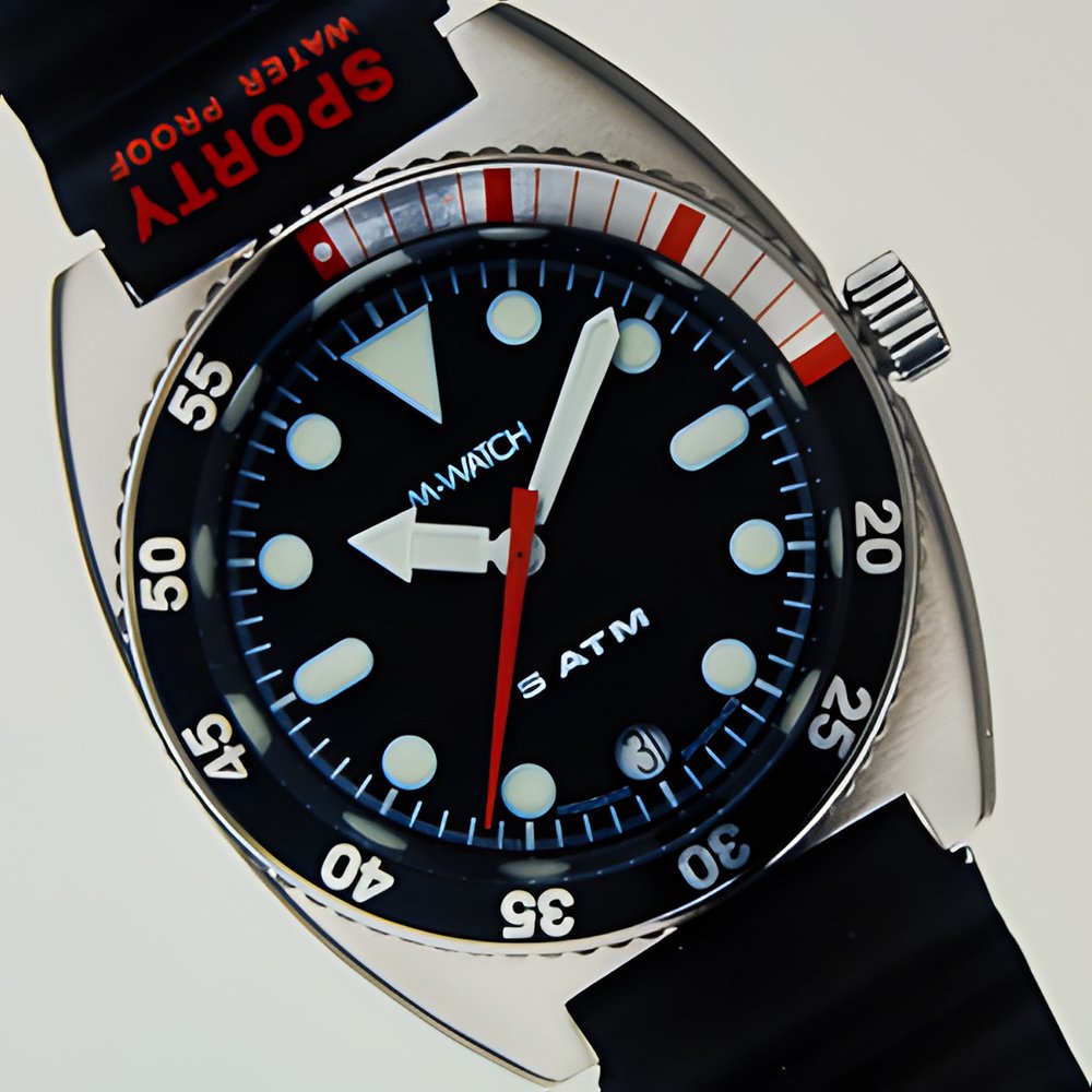 This sporty watch has been produced by Mondaine for fans of the 1960’s. With its matt brushed metal surface, decorative red and black bezel, and slightly convex mineral glass, it will become their favourite accessory. Fitted with a quartz movement and water-resistant to 50 rn, it comes with a Mondaine international after-sales service guarantee.