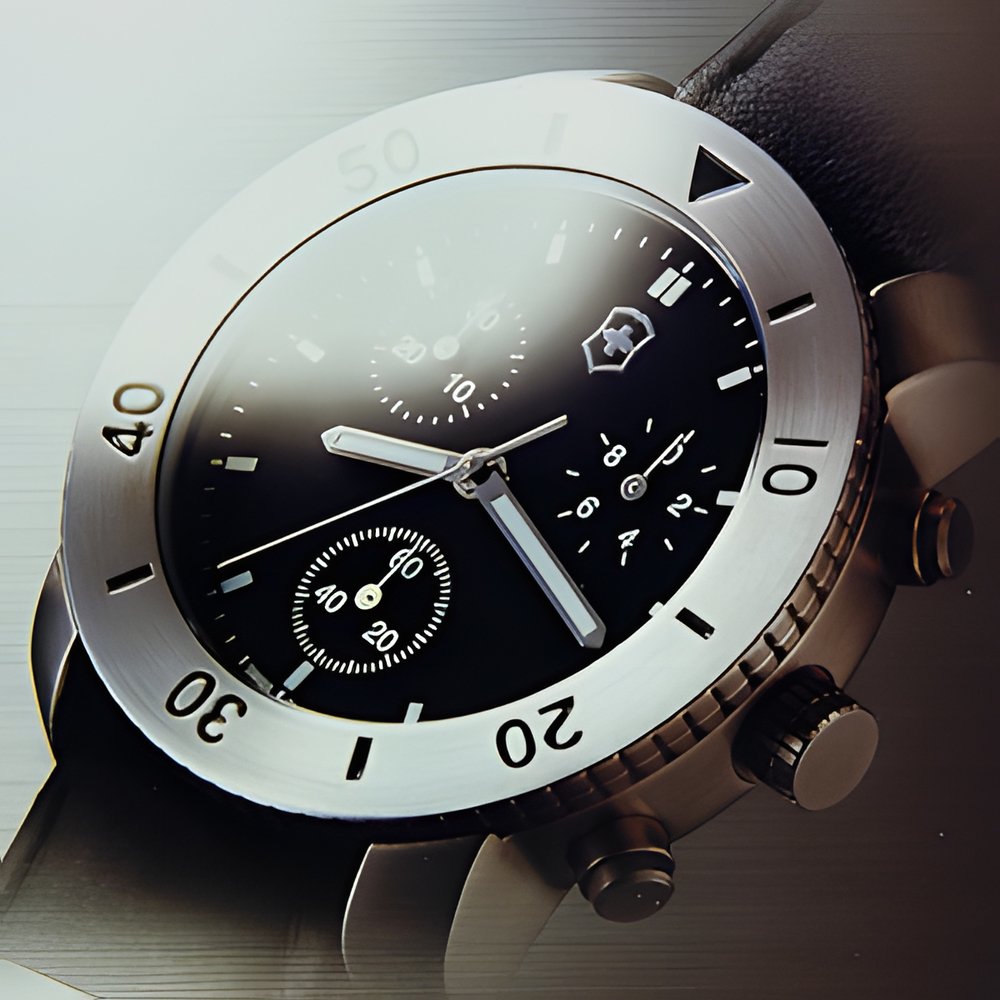Top-of-the-line model in stainless steel from the new Victorinox V-7 collection, this diver’s watch with chronograph functions is equipped with a rotating bezel. Water resistant to loo m. Screw-in crown and luminous hour markers. Design by Hannes Wettstein, inspired by the original Swiss Army Knife.