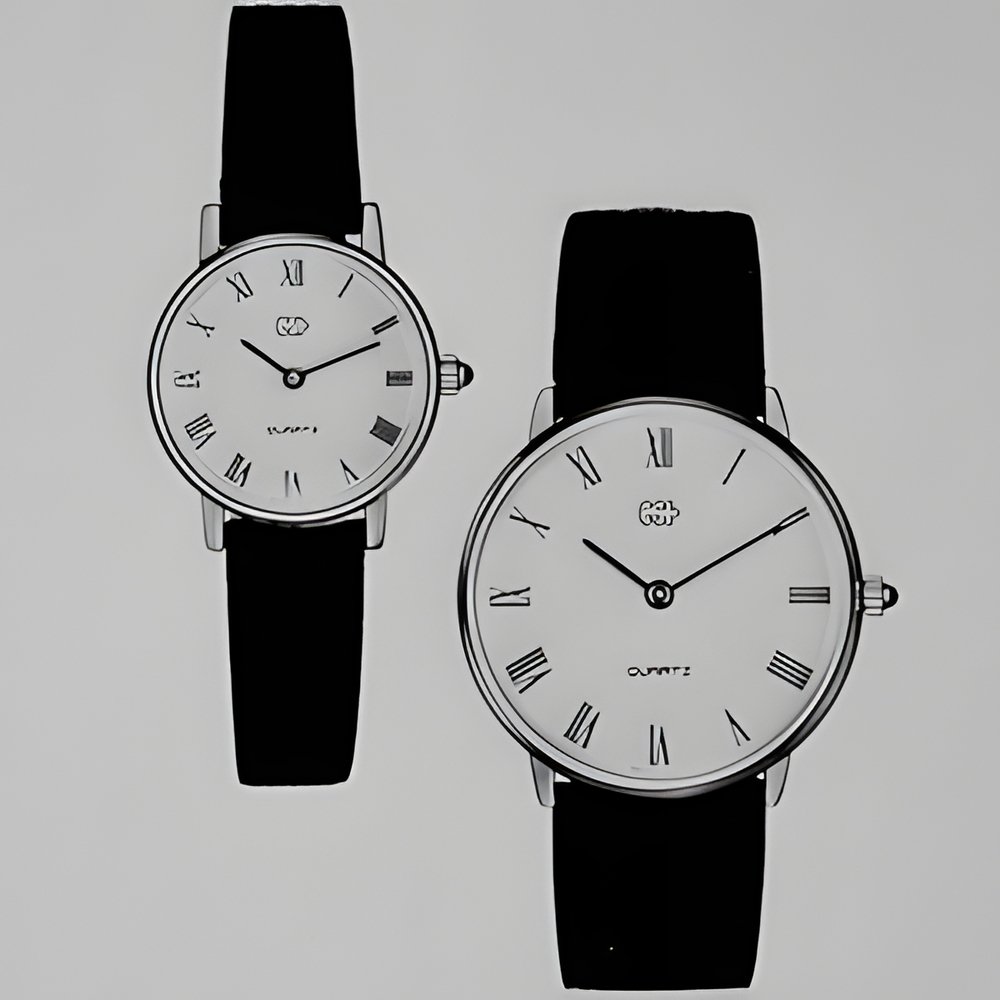 Two quartz models from the new collection of a new brand name : EST - Economic Swiss Time. Clean, classic styling with broad dials and slim goldplated cases. Plus the unrivalled precision of quartz. (EST - Economic Swiss Time Ltd., Mumpf)