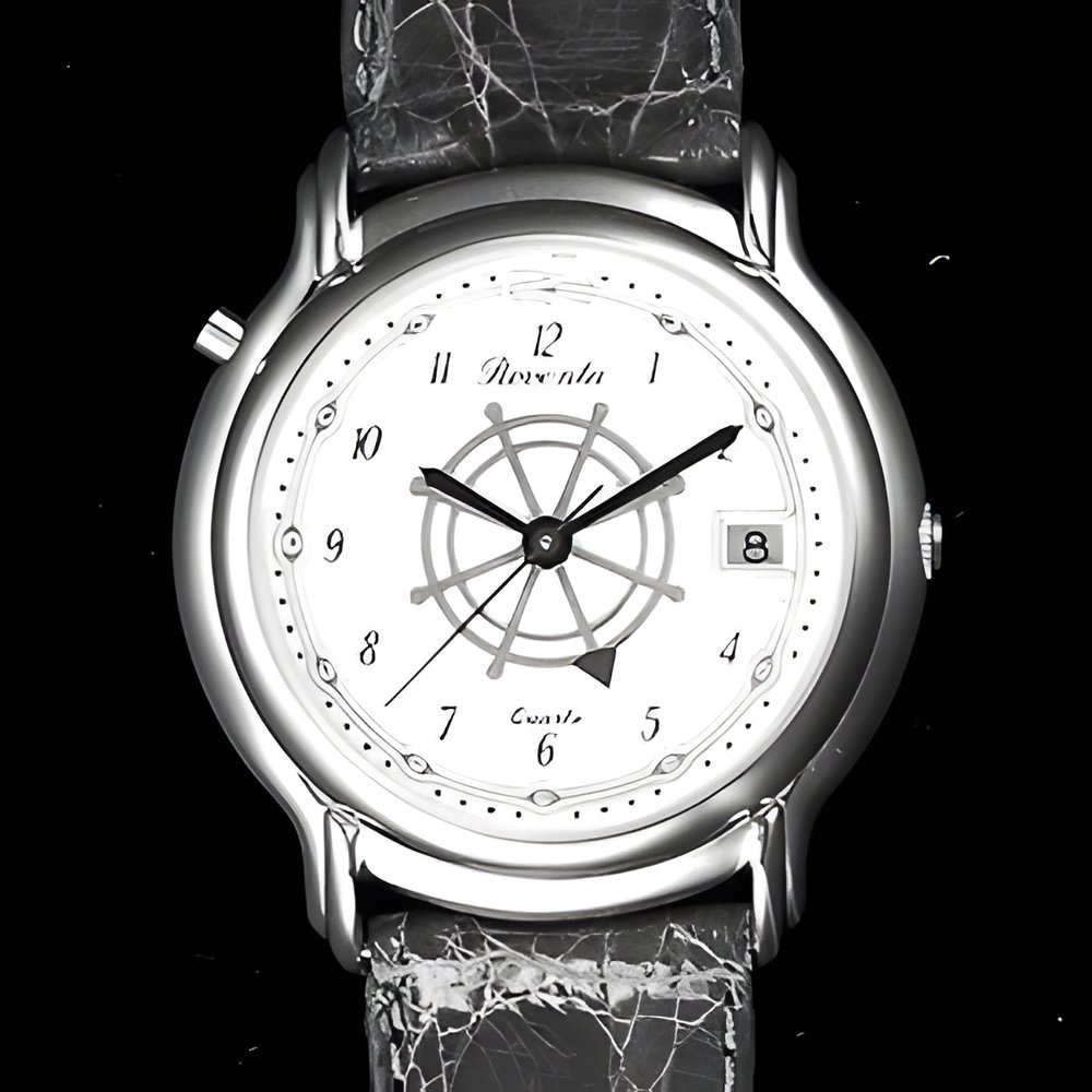 The Roventa “Two-Time” is designed to provide the time of day in two timezones (local time and GMT, for instance), by means of a pushpiece-operated second hour hand. It is fitted with an ETA quartz calendar movement specially modified by Roventa. Goldplated case with mineral crystal water-resistant to 30 m. (ROVENTA-HENEX “Two-Time”)