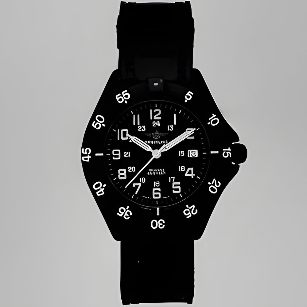 A true professional diving watch from Breitling. The minute hand carries a capsule filled with the fluorescent gas tritium, providing nearly 100% better legibility at great depths than other systems. The watch’s unidirectional turning bezel also features a similar capsule, protected by a sapphire crystal. All-steel case water-resistant to 200 m (20 atm), with mineral crystal. The strap’s two steel pins (a Breitling patent) are designed to prevent the bracelet from being ripped off the wrist. (BREITLING “Seacolt”)