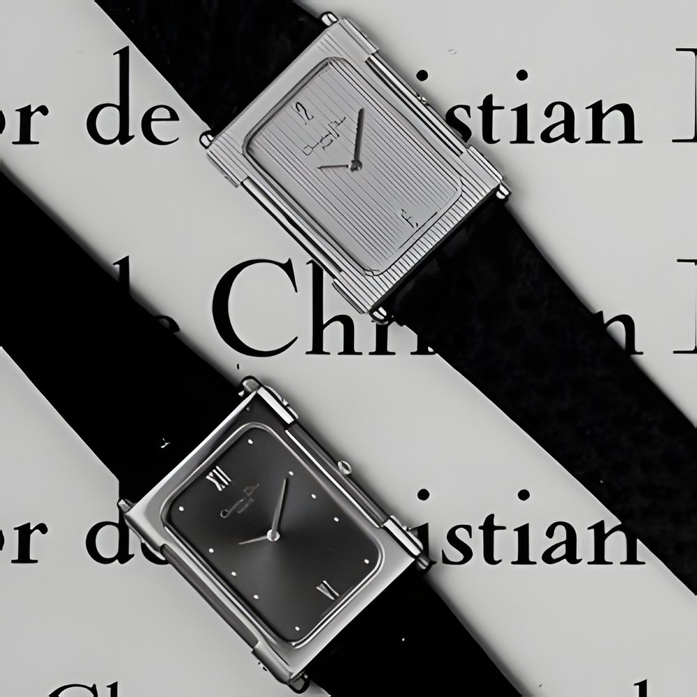 The “New Look” collection of “Les Dior de Christian Dior” : elegant cases enhanced with lateral tubing, 18K goldplate, extra-thin quartz movements and ostrich leather straps. Swiss manufacture. (LES DIOR DE CHRISTIAN DIOR)