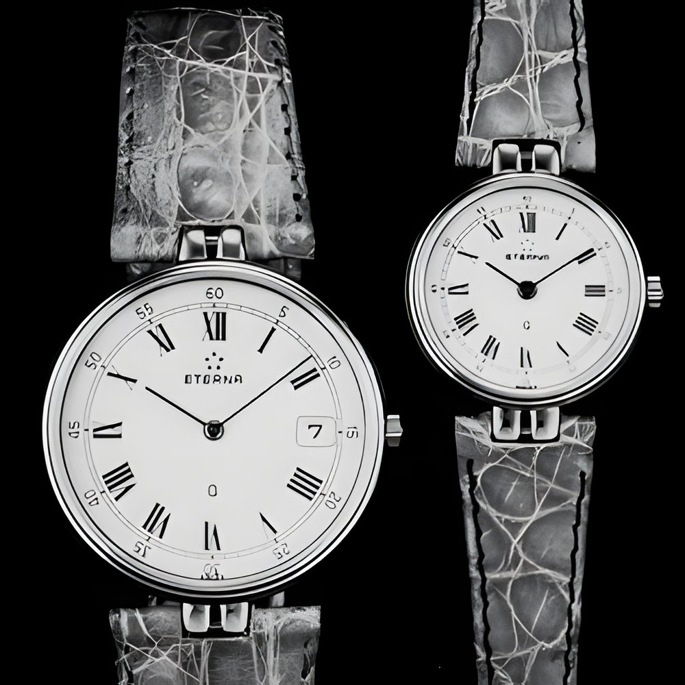 Eterna’s fashion designs are wedded to their time : neat, trim lines, ultra-thin cases water-resistant down to 30 m, scratch-resistant sapphire crystals... With leather strap or choice of two-tone or goldplated steel bracelet. Registered models. (ETERNA “St-Honoré IV”)