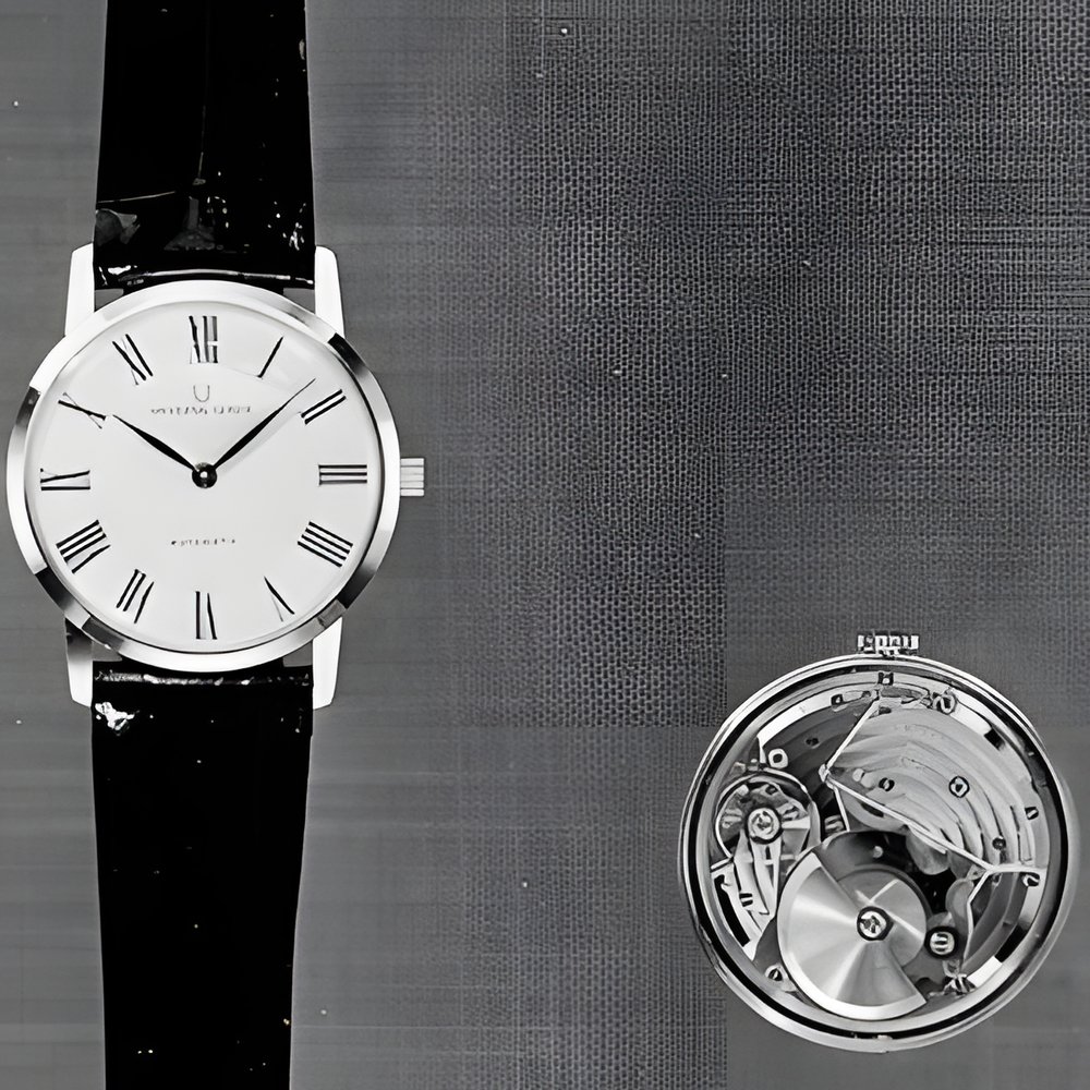 One of the most important new Swiss technical developments presented at the Swiss Watch Fair this year the ultra flat self-winding “Golden Shadow” watch. The automatic oscillator runs entirely on ball bearings, but its total thickness is only 2.5 mm. It has a 48-hour power reserve. The complete watch is only 4 mm thick, which makes it the world T s thinnest automatic with ball bearing movement and fully shock-protected. (UNIVERSAL “Golden Shadow”)