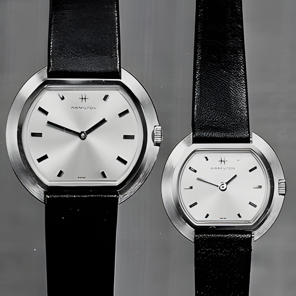 The current line - the oval - and modern styling are far from incompatible. These two watches are the proof - “his and her models, their extra-slim case fitted with an entirely new waterproofing systern (patent applied for). Both are offered in steel or in solid gold. (HAMILTON”Fontainebleau" registered model)