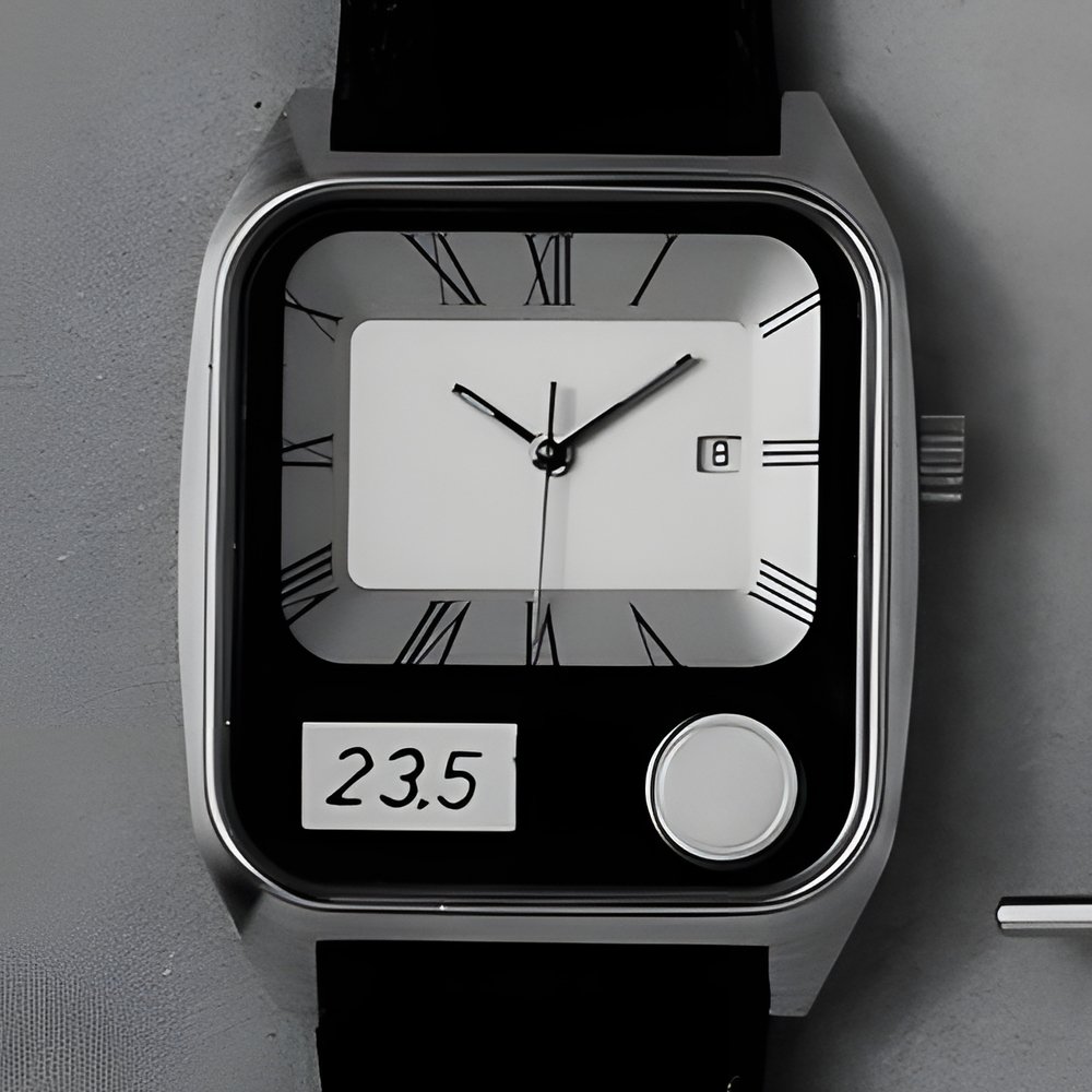 A world first, this analogue quartz watch also measures room, skin, or liquids temperature, by means of fixed or mobile sensors. In few seconds, precise data are flashed on a digital readout. screen., (GYROPAN Diffusion ’thermotime")