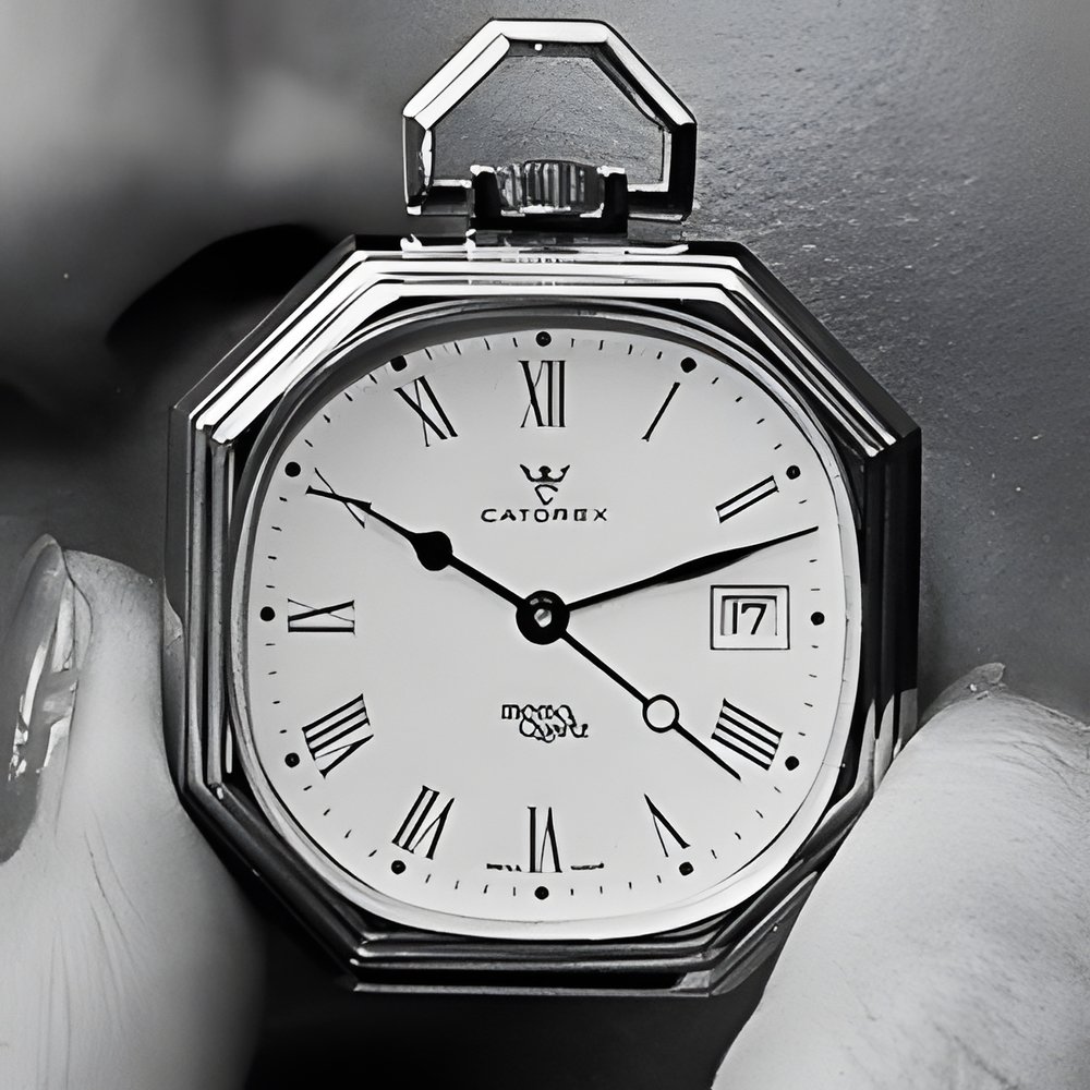 Made for the pocket or for the handbag, this stylish Catorex design features the new quartz analog movement with alarm mechanism. Its eight-sided case with tiered bezel also comprises a little backrest allowing it to double as a bedside alarm clock. (CATOREX)