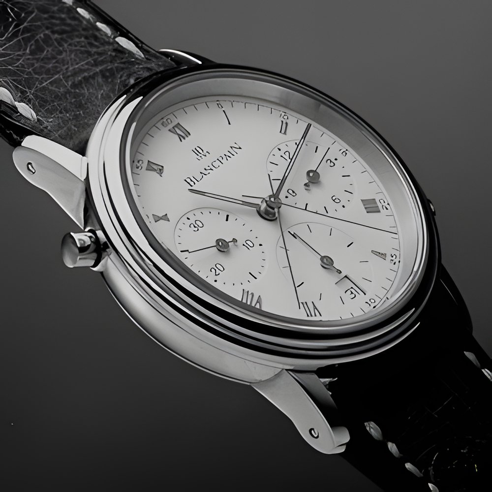 Watchmakers developed the mechanical clutch long before it appeared in motorcars. The flyback hand of a chronograph, for example, could not work without one : while to the eye the hand is motionless on the dial, its mechanism continues to count elapsed time. Even today, creating a wristwatch movement featuring a system of this kind is a technical feat. And Blancpain’s design, premiering at BASEL 88, has the added virtue of slimness : its selfwinding chronograph movement with flyback hand and date calendar is only 6.75 mm thick... (BLANCPAIN)
