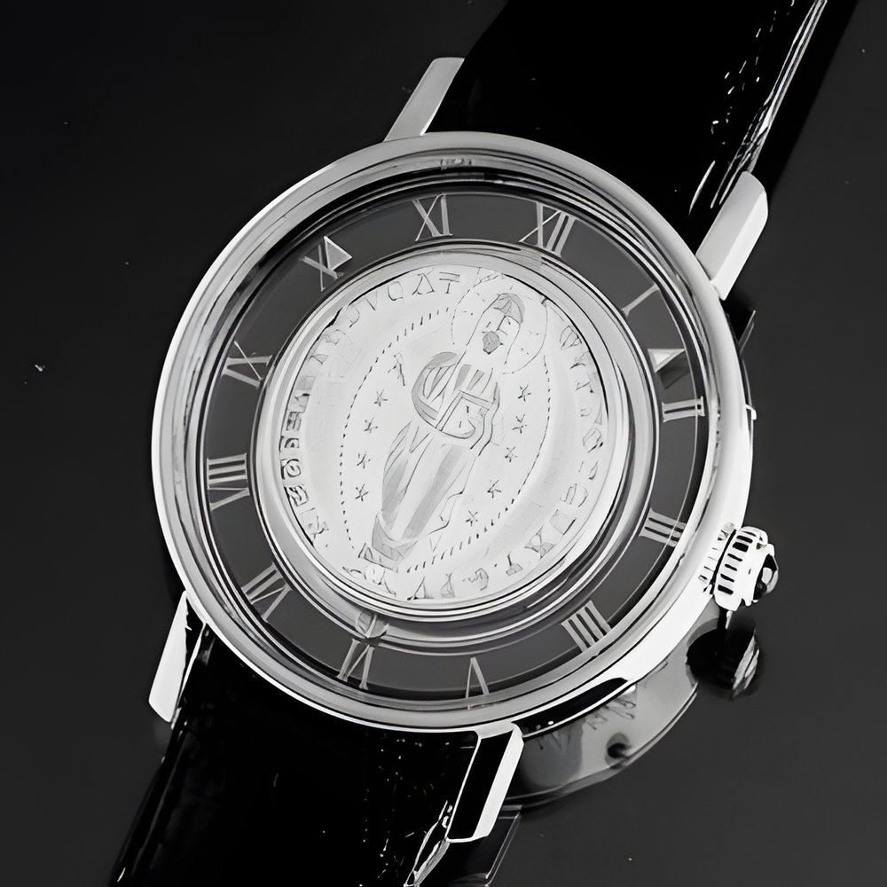New to watchmaking and to coin collecting Master craftsman Armin Strom, of Burgdorf (Canton of Bern), has created this 18K gold watch fitted with a Piguet seifwinding movement. Entirely decorated by hand, it features a gold coin minted in the year 1450. A new time-display system using two sapphire crystals does away with the need to pierce the coin, thus preserving its numismatic value. Limited-edition model, each watch individually numbered. (ARMIN STROM, Burgdorf)