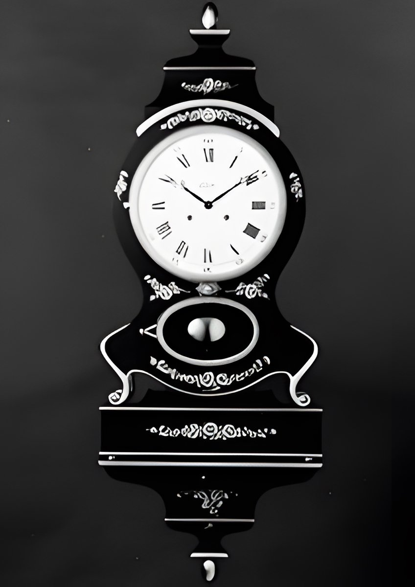 A classic Jeanjaquet type Neuchâteloise mantel clock, with music-box mechanism. 8-day movement striking hours and half-hours. After the hour strike, the music box (144 blades, 3 melodies) goes into action. Wide range of melodies to choose from. Total height : 100 cm. (WERMEILLE S.A. - LE CASTEL)