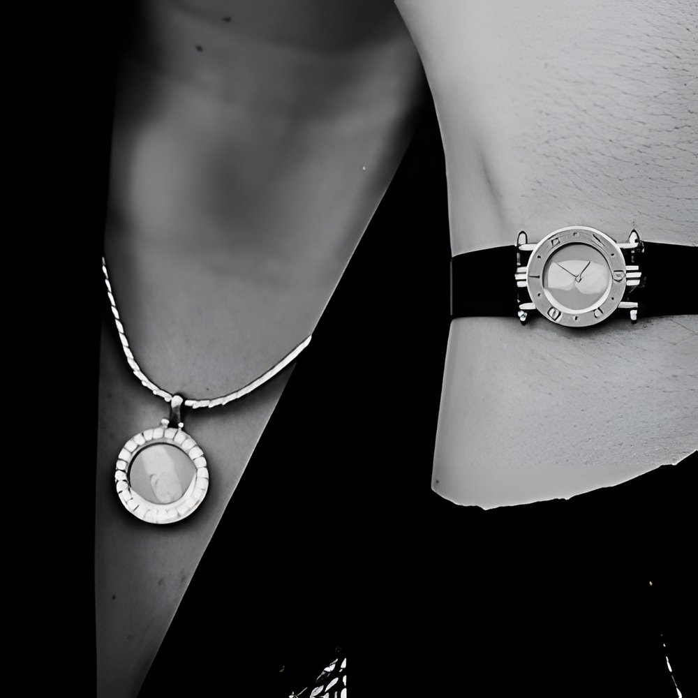 The dial of this 18K gold watch is made of 24K gold coin bearing the likeness of “Fortuna”, the Roman goddess of fortune. Water-resistant, quartz movement, crocodile bracelet. From the new “Tesoro” collection developed by Pamp S.A., Geneva, in collaboration with Chopard & Cie S.A., Geneva. Accompanied by a pendant in the same workmanship, the “Fortuna” gold coin is crowned by Top Wesselton IF diamonds. (PAMP S.A., Geneva)