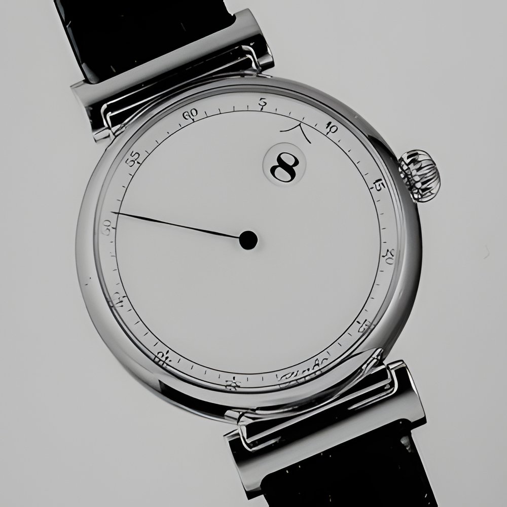 A completely new design, this model is called “Baladin”. It features an analogue-cum-digital time display system. The mobile aperture with the hour indication moves around the dial and its mobile arrow points to the minutes inscribed analogically on the dial rim. Centre seconds hand. Case i silver clad in nysonium (giving a natural colour) or in 20-micron goldplate (vermeil). ETA 282L./2 selfwinding movement visible through the transparent, mineral-glass case back. (PINKO “Baladin”)