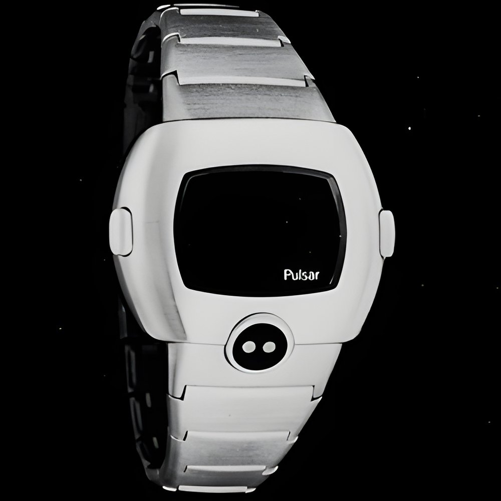 In addition to giving the time and date, this new Pulsar product computes the pulse rate, averaging it every two heartbeats, and displays the result. (PULSAR Pulse Time Computer)