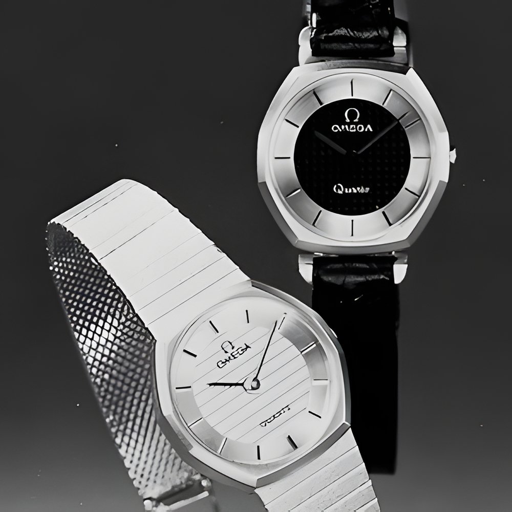 smallest on the market This new OMEGA calibre is smaller than 2 Swiss coins of 5 centimes. Totally electronic time setting system: a single recessed corrector button. Scratch resistant sapphire crystal, crocodile bracelet or diamond-cut gold bracelet.
