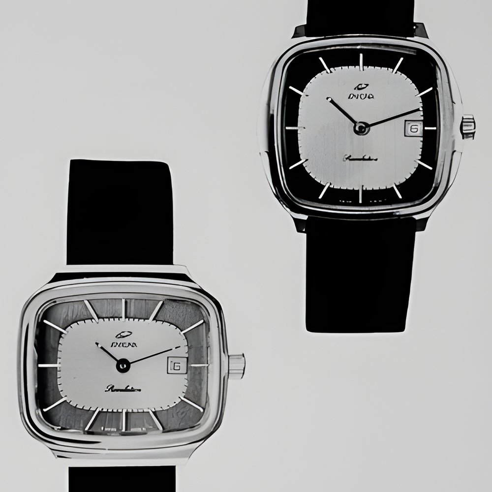 A pair of elegant models from the Enicar Revelation collection, largedimensioned in keeping with current fashion. With water-resistant rhodium-plated or goidpiated case ; extra-thin calendar movement. (ENICAR - Revelation)