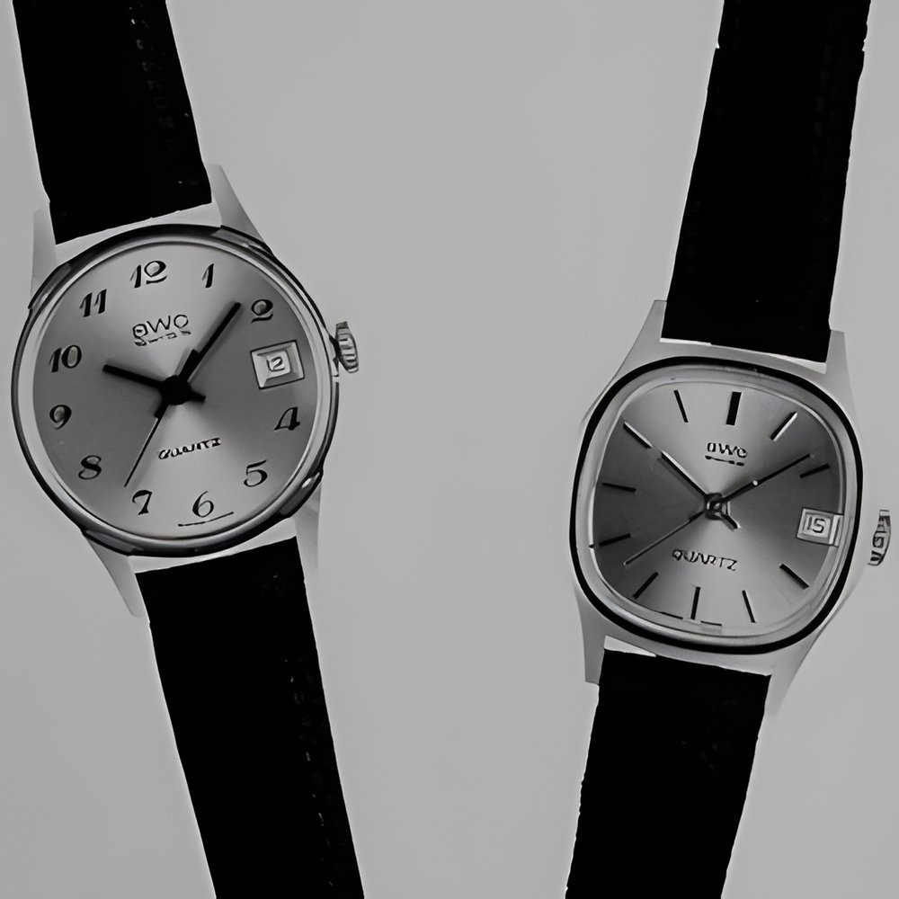 To ladies’ models from the BWC quartz collection featuring a new compact analogue movement with centre seconds and calendar. Goldplated case with the broad dial aperture so fashionable today. Diameter 24 and 25 mm. (BUTTES WATCH Co. - BWC Quartz)
