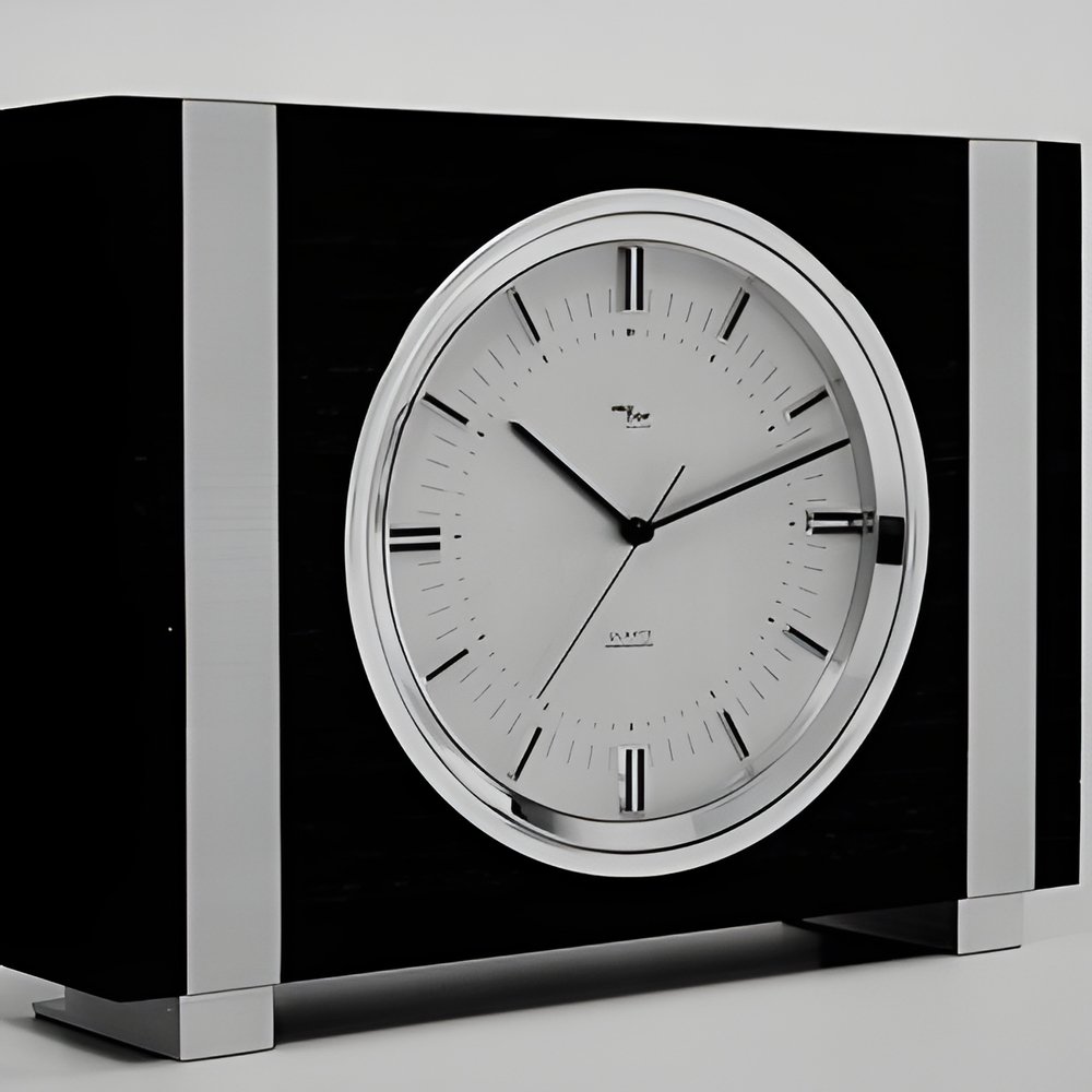 This table clock boasts the same unrivalled accuracy as an atomic clock Its 4-MHz Imhof quartz movement is constantly synchronized by the HBG transmitter in Prangins, Switzerland (itself regulated by an atomic clock) whose signals cover all of Europe and the Mediterranean area It features a remote-controlled switching system to and from summer time. A large-capacity battery provides the clock with a 10-year power.