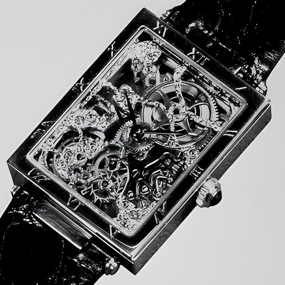 Starting with a rectangular movement, Armin Strom, the talented Burgdorf craftsman, has ’just completed a spectacular “skeleton” watch, entirely openworked and engraved by hand. This is probably the first such timepiece made since 1937. Its case is in solid 18K gold. Each watch is individually numbered and signed. Also available in white gold, two-tone gold or in platinum. Truly a limited-edition design. (ARMIN STROM, Burgdorf, Canton of Berne)