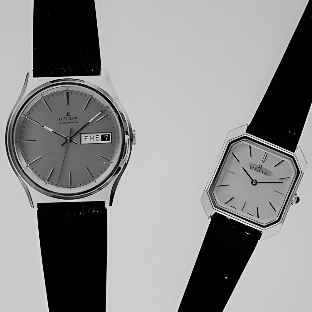Seifwinding watch with day-date calendar (featuring the new ETA 2879 calibre) with case water-resistant to 3 atmospheres, mineral crystal Fashionable 8-sided goldplated case with steel back for the woman ’ S model. (EDOX)