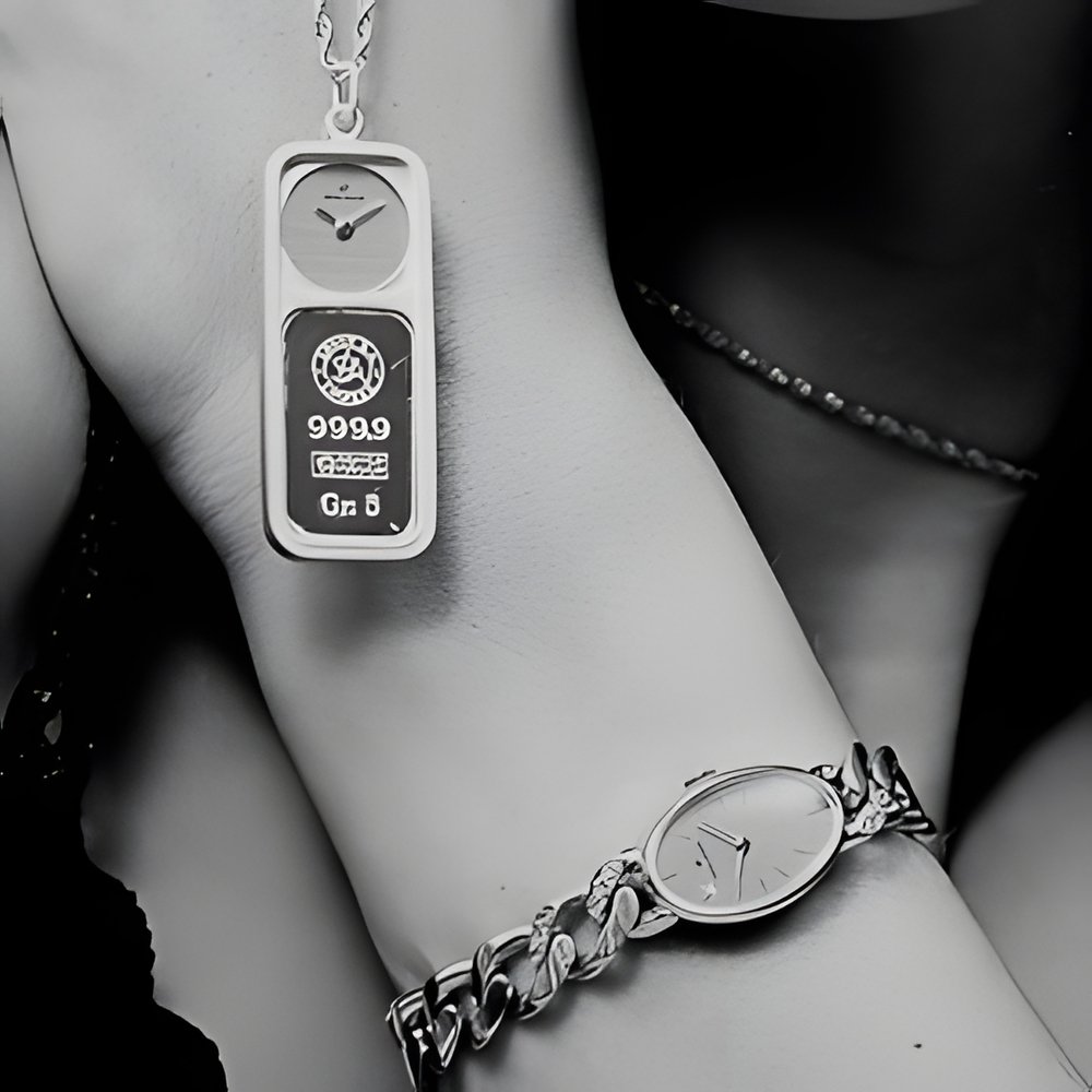 Two new designs by Golana. The pendant watch’ s yellow gold case contains a bar of 24K gold (an investment as much as stunning decoration). The wristwatch is also in gold and features a curb-chain type bracelet set with 14 full-cut diamonds. (GOLANA)