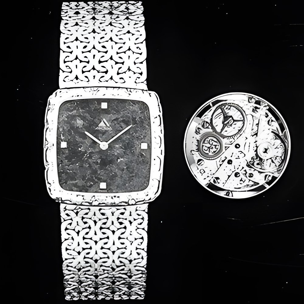 A prestige design in 18K yellow gold, engraved by an. The opal dial features four diamonds. But luxury does not stop there : even though it is hidden inside the case, the extra-thin movement is “customized” with hand engraving and openworked bridges. (ARCANA)