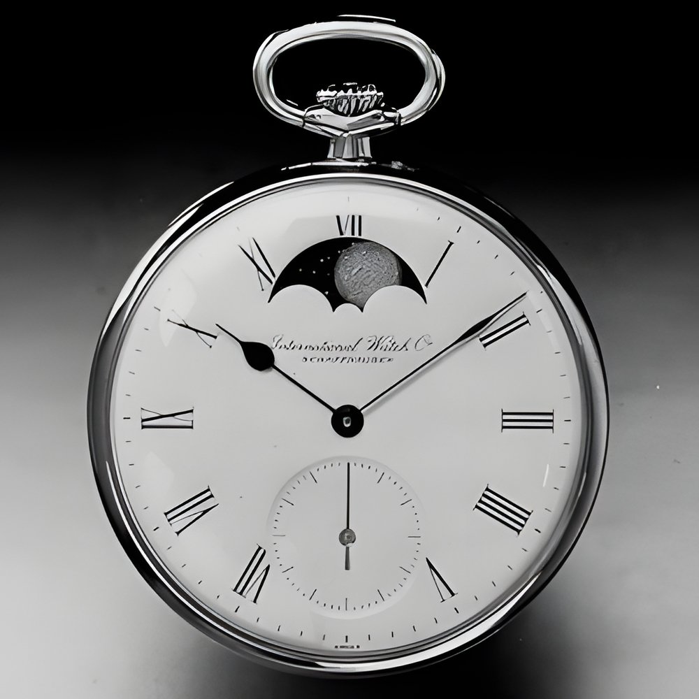 This IWC pocket watch, featuring the phases of the moon, is the thinnest of its kind made Its case is in 18K yellow gold - a classic and superbly elegant design. (IWC - INTERNATIONAL WATCH CO.)