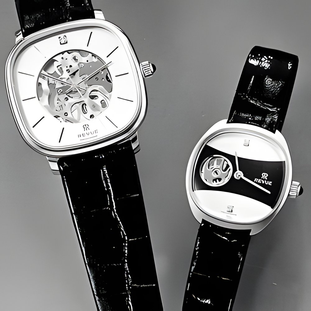 These two models are fitted with a mechanical movement - and they are proud to show it. For men, a full skeleton watch with elegant openworked movement. For women, an aperture in the dial reveals the balance wheel’s oscillations. (REVUE “Open heart”)