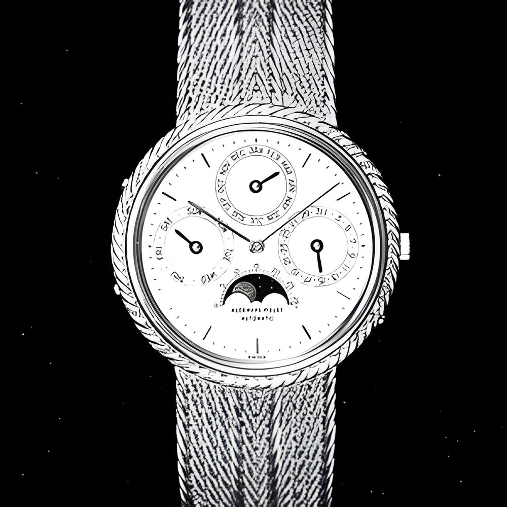 A nev design by Audemars Piguet based on the reputed extra-thin automatic movement (with rotor in 21K gold) featuring a perpetual calendar. It shows the day, the date, the month and the phases of the moon and is programmed until the year 2100. Case and bracelet in 18K yellow gold. (AUDEMARS PIGUET)