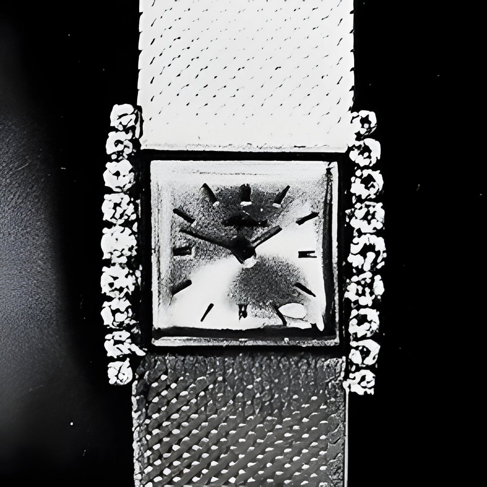 This square watch is severely classical in conception. But its extra wide dial follows current styling thinking. The dial opening has two rows of brilliants studded on each side. Further point to note from Switzerland t s watch stylists this year: the extra wide, very supple bracelet. In 18 ct. yellow gold. (ALPINA)
