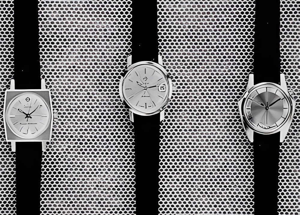 These three new Zodiac models are eloquent proof of the evergrowing popularity of ladies’ self-winding watches All three have a waterproof steel or goldplated case and one a calendar. It is not without interest to note that two of these models are actually scaled-down men’s Corsair and Olympos (with hour-hand incrusted on a turning disc) models. (ZODIAC)