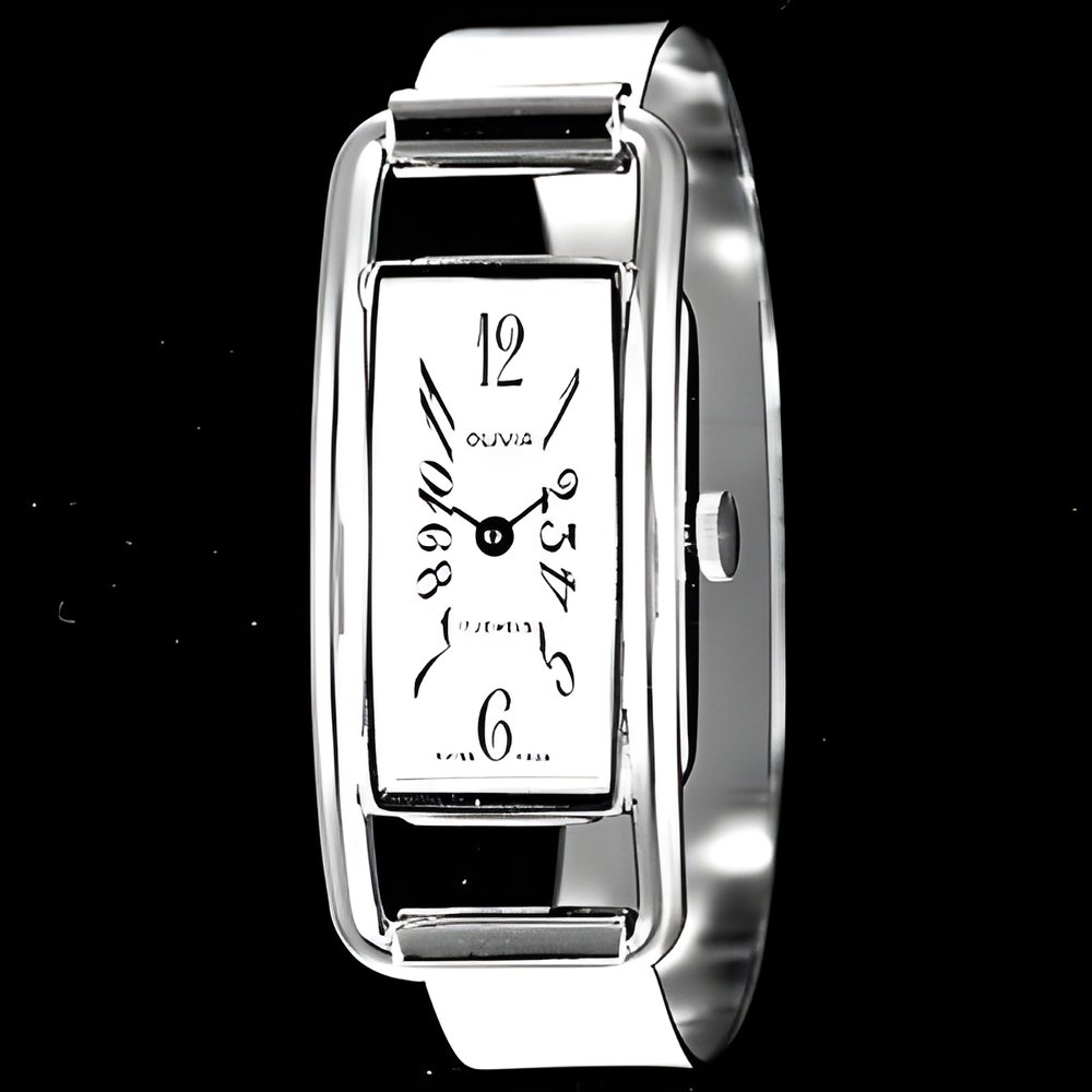 An ingenious solution here : the case decor forms a stirrup which in turn serves as clasp for the rigid bracelet. Dial with mother-of-pearl finish and Breguet figures. An economical yet elegant model. (VIATOR - OLIVIA)