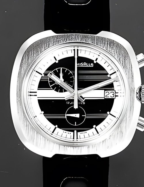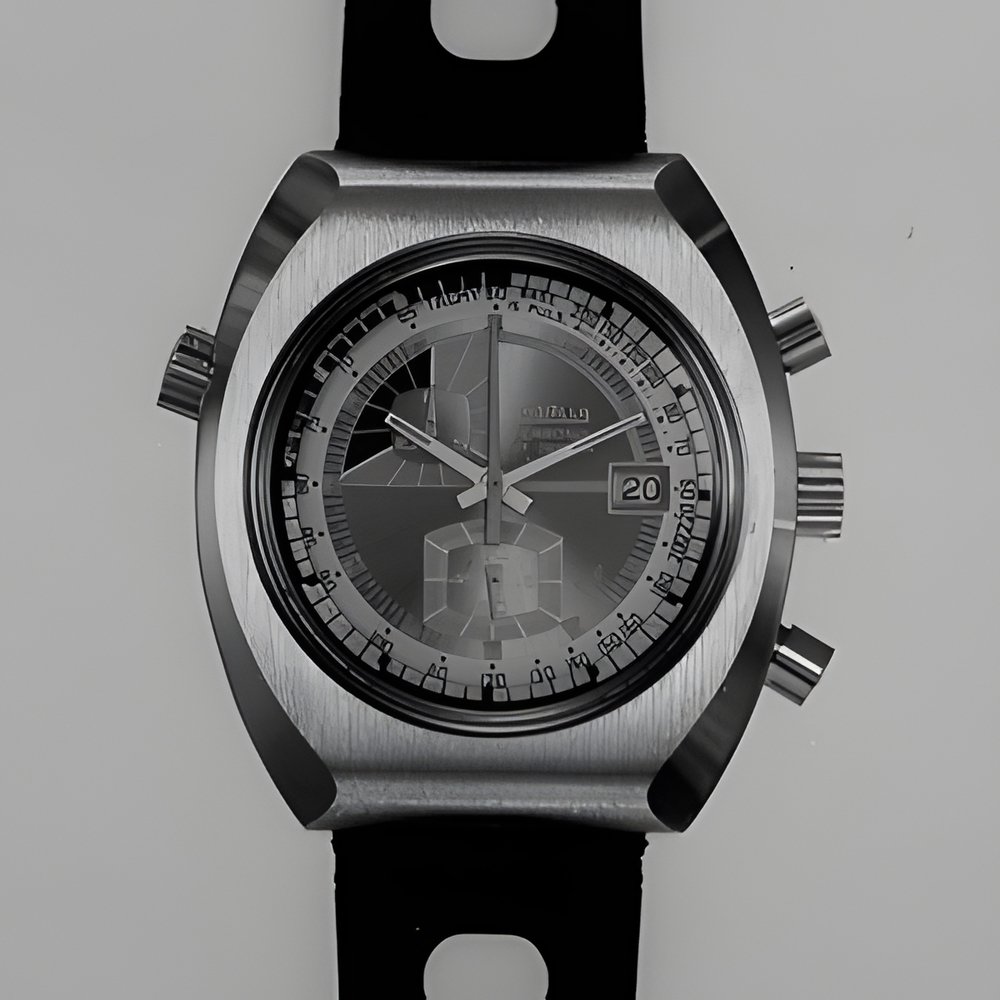 An economical model for the younger set: second and minute recorders, pulsometric and tachymetric scales, shock protection and water-resistant case. Multicoloured dial. (Weber - MISALLA)