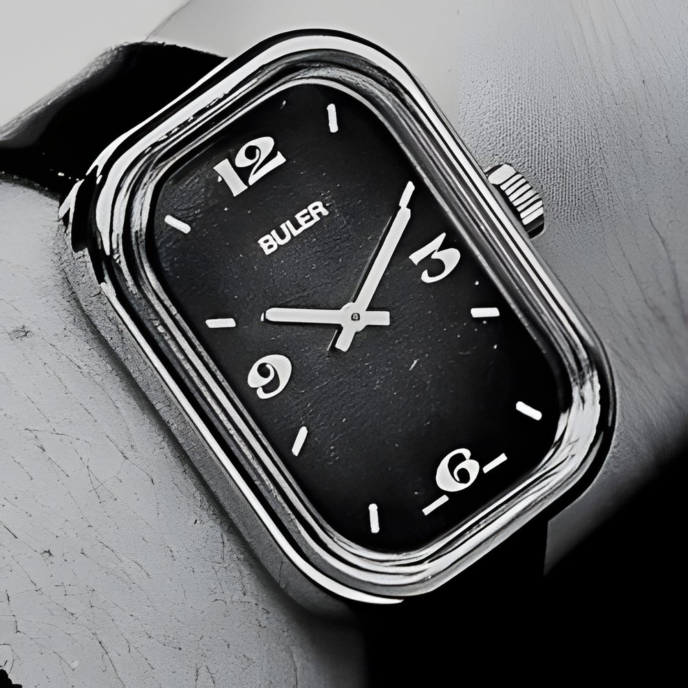 An economical model combining all the latest styling features : the comeback of straight - and simple - lines, slim bezel, large dial with numerals (another comeback). (BULER)