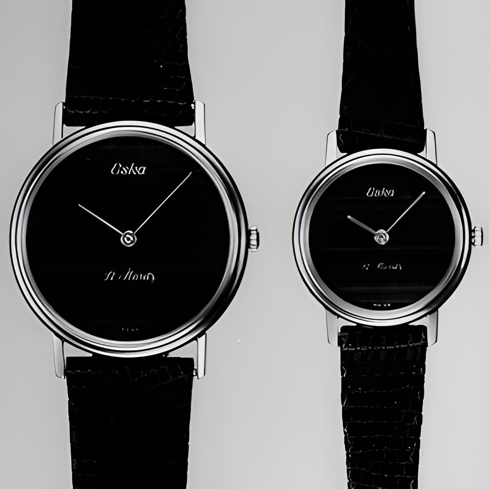 The restrained mood of 1975 watch fashions shows clearly in these extra-thin models with graceful goldplated and steel-backed case with slimline bezel. Serenely plain tiger’s eye dial. (ESKA “St. Moritz”)