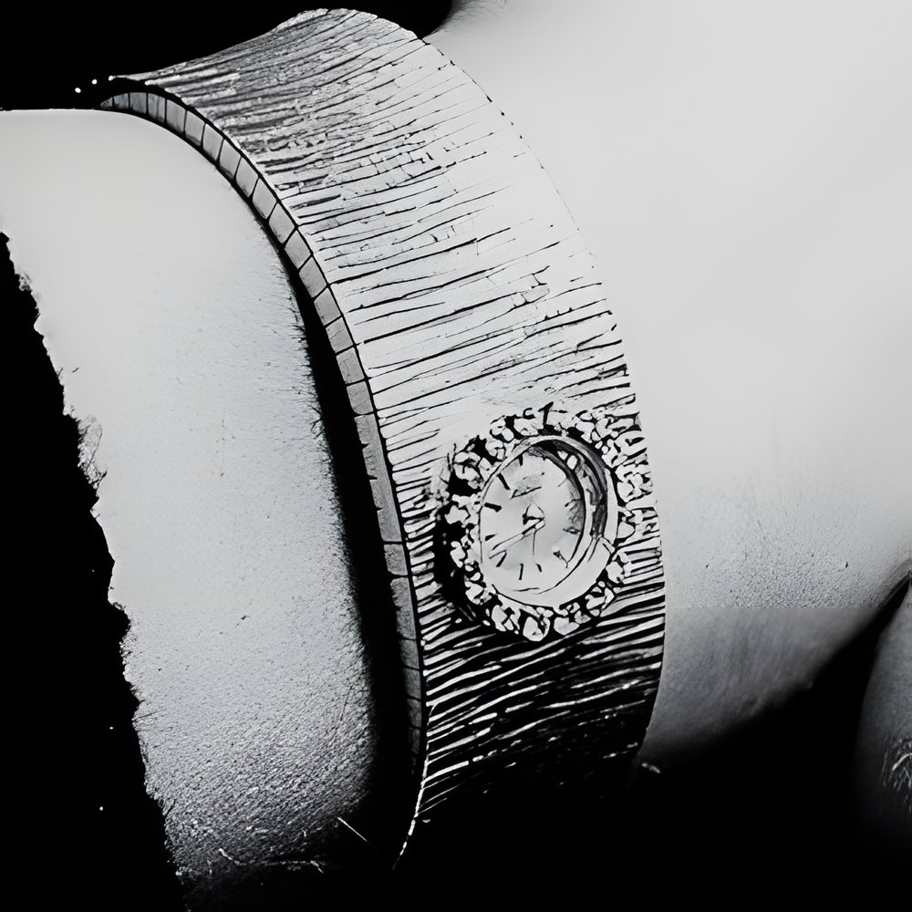 Jewellery watch with a wide, fashionable diamond-cut bracelet The delicate round aperture is entirely set with diamonds In 18-carat yellow gold. (ALPINA)