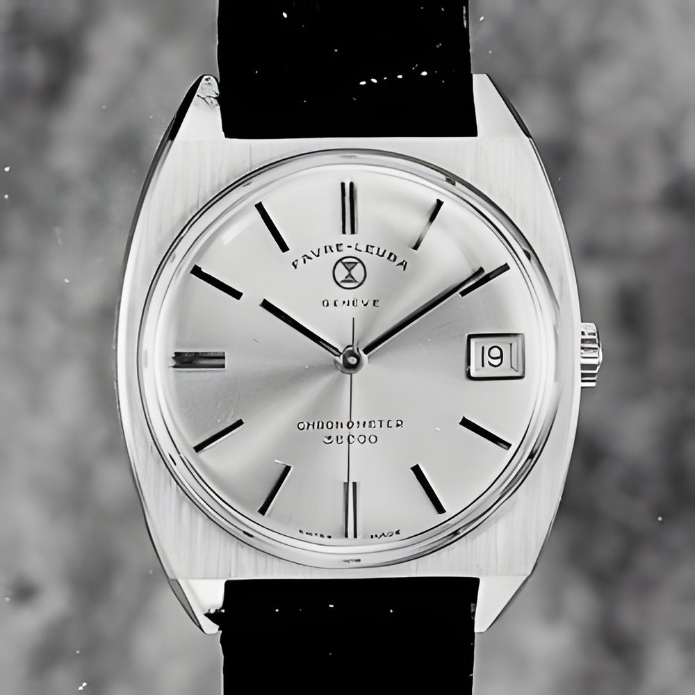 One of the most notable aspects of the 1967 Watch Fair was the great number of high-frequency self-winding watches (presented by eleven manufacturers) on display. Raising the number of vibrations per hour to 36,000, i.e. nearly double that of standard watches, results in an extraordinary rate stability. This Favre-Leuba model, an officially certified chronometer, has an 18-carat gold case and a calendar. (FAVRE-LEUBA)