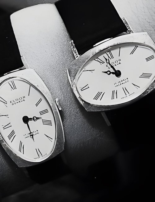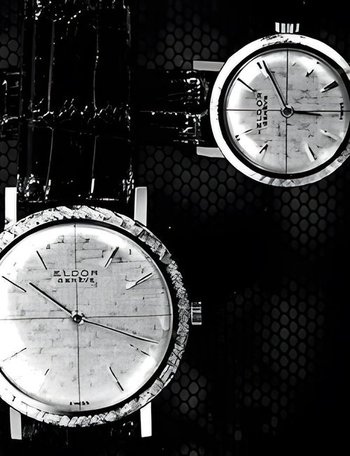 A multi-purpose ladies’ watch: automatic, waterproof case and centre seconds-hand for the world of sports and a world of elegance in its stylishly incurved square case with round dial. (ELDOR-Genève)