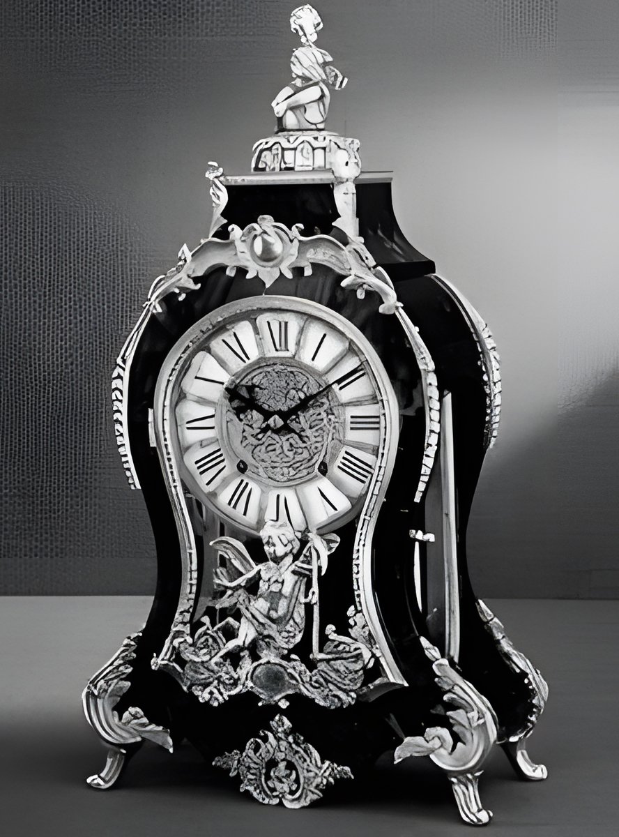 A Louis XIV style clock that speaks for the art of 20th century craftsmen and is worthy of those who worked for the Sun-King himself. Both its shape and the quality of its bronzes are equal to those of the time The dial has enamel cartouches with painted figures Strikes hours and haifs. (AZURA)