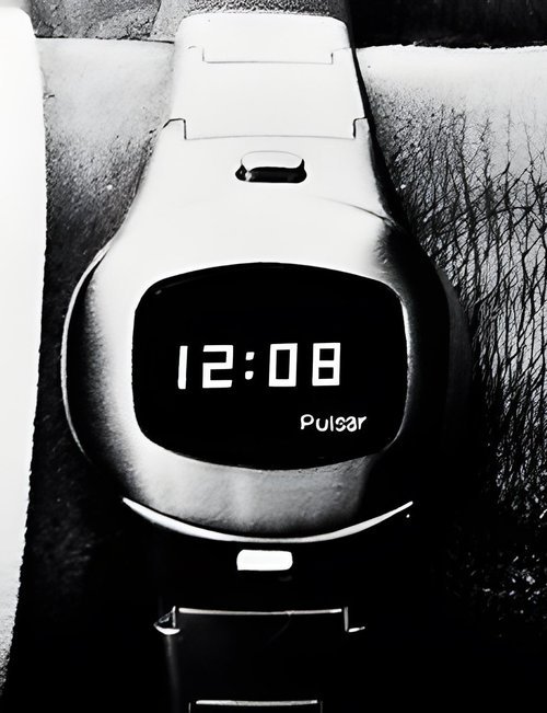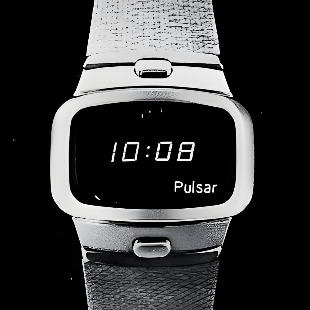A new Pulsar solid-state model with compact, elegant styling. Case and bracelet in 18k gold. (PULSAR)