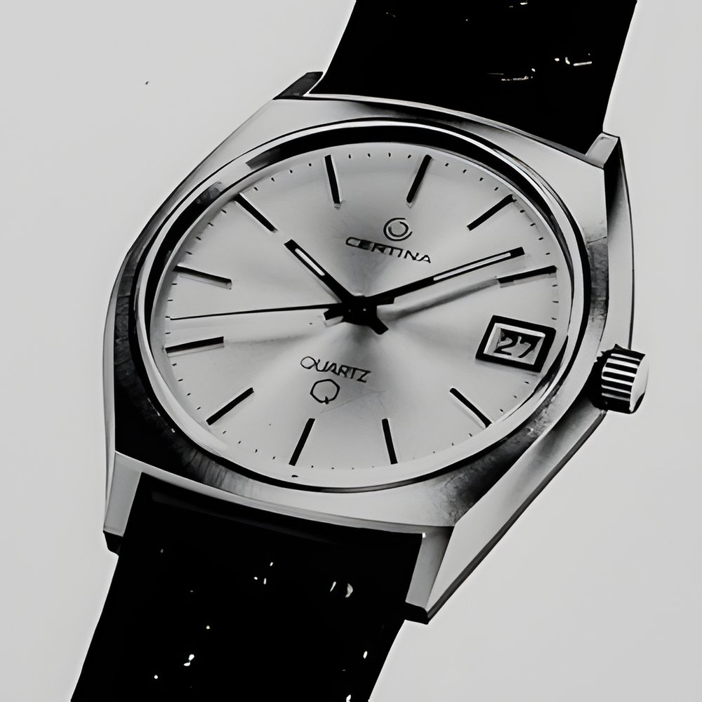 Certina designers have created this extra-thin model with very contemporary styling around a new quartz electronic module that is only 306 mm high. The tuning-fork shaped quartz is thermocompensated and the micromotor requires very little power. (CERTINA Quartz cal. 754)