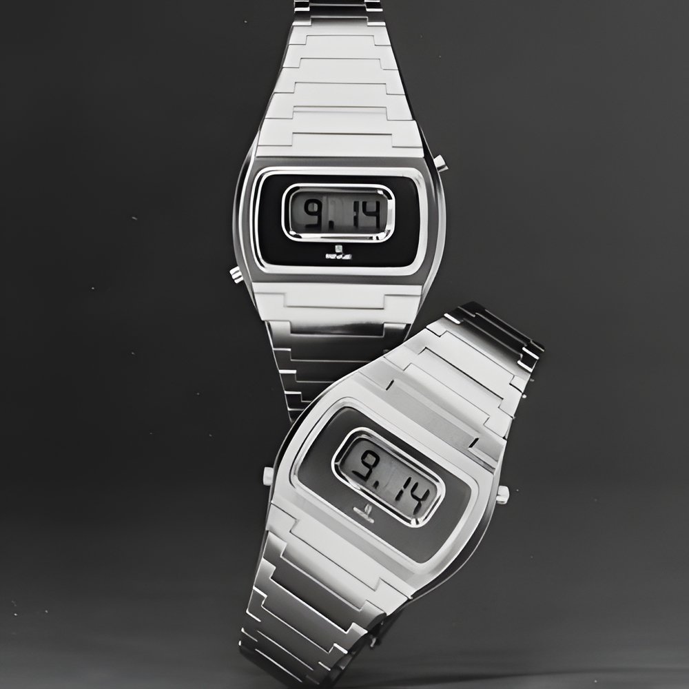 These new solid-state watches from Revue are notable for their extreme accuracy. Their elegant contemporary styling is specially tailored to this new type of timepiece. Quartz frequency : 32,768 Hertz. Permanent hour and minute readout on this liquid crystal display (LCD) screen with particularly sharp and legible contrast. Its date and month calendar is programmed for 4 years ; seconds readout (with minute unit) on command. Screen backlight for night reading. Battery life is over one year (approx. 17 months). (REVUE)