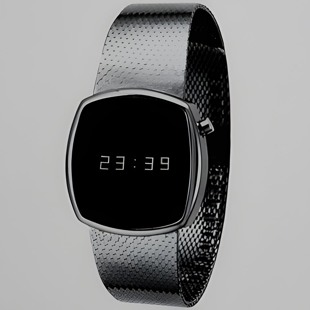 A representative example of Agon’ s LED timepiece collection that comprises over 60 different models. 6 functions, including alphanumerical readout of the day of the week. 24-hour readout. (AGON)