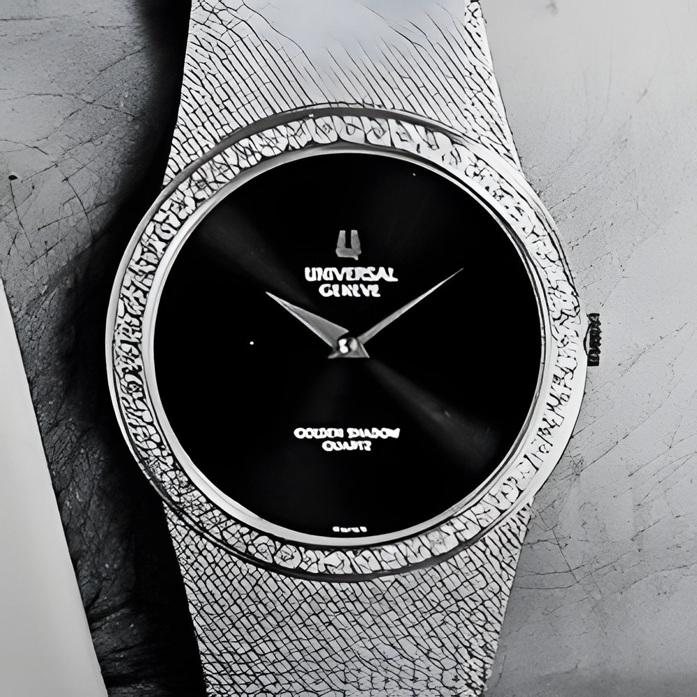 The added elegance of impressive precision characterises this 18k white gold model set with brilliants and equipped with the Universal quartz electronic movement only 3045 mm thick. A perfect match of extra-thin styling and quartz-piloted accuracy. (UNIVERSAL - Geneva)