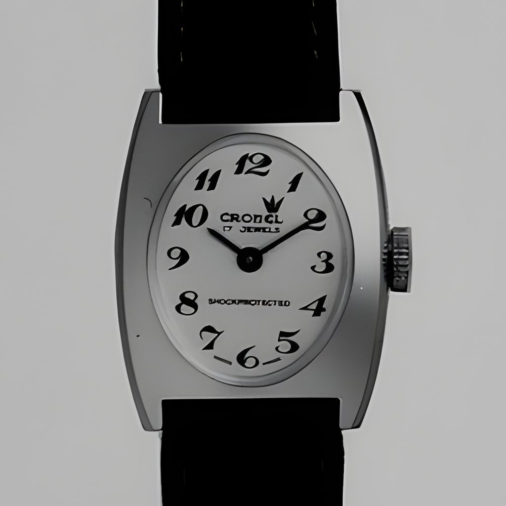 Dainty, trendy but economical: a lady’ s model with very legible dial featuring Breguet hour figures. Chromed or goldplated case and shock protection. (CRONEL)