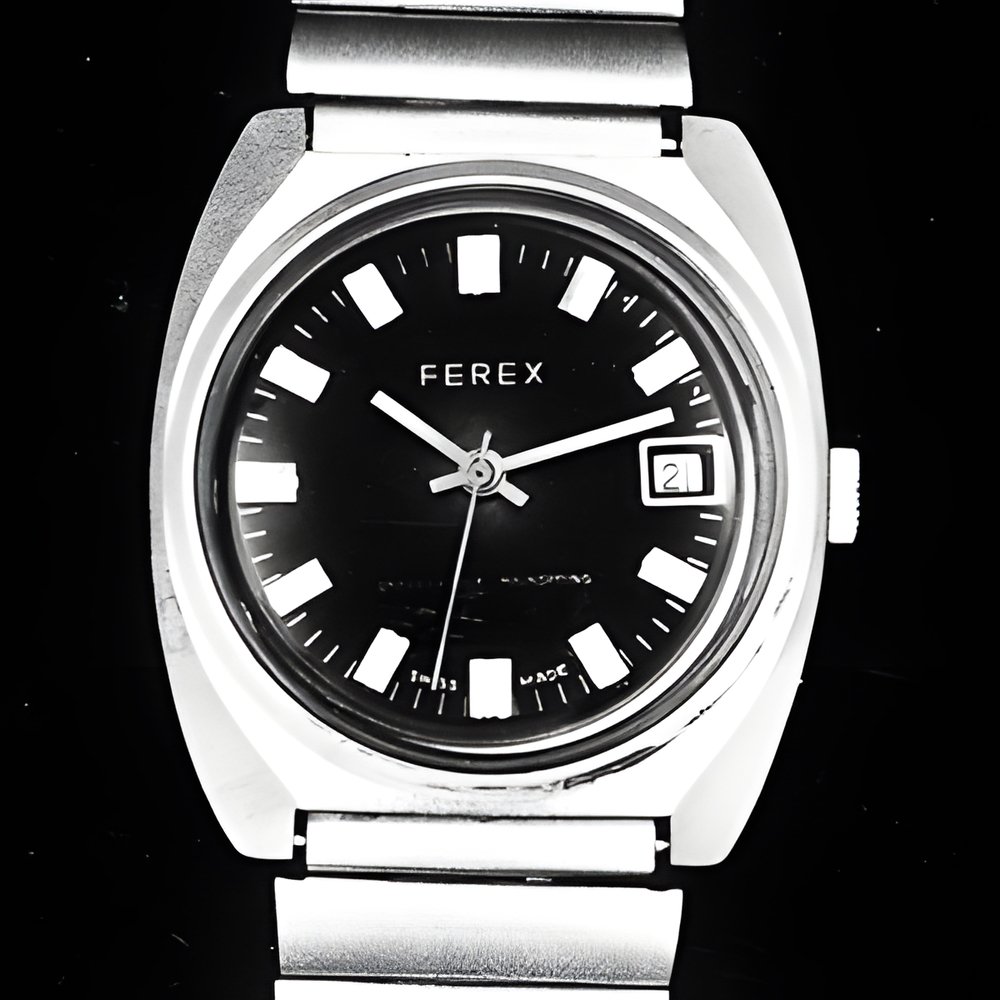 Bronzinal or chromed case and integrated metal bracelet for this new Ferex watch for men. It features a centre seconds hand and a calendar. (FEREX)