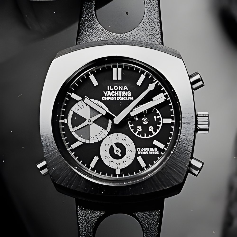 For sailing enthusiasts, a yachting chronograph with special regatta start counter. Hour and minute totaliser. Synthetic case, guaranteed water-resistant to 3 atm. (ILONA Yachting)