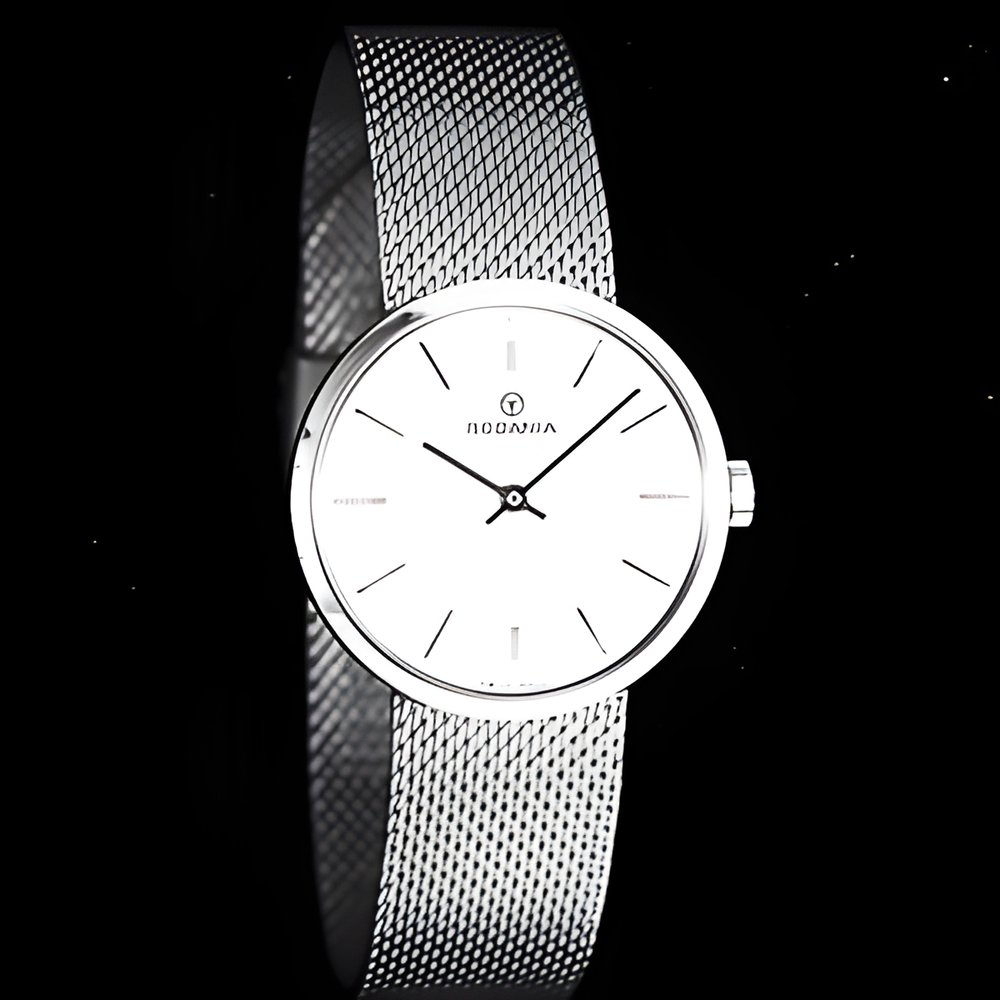 Classic beauty with modern lines whose very simplicity implies subtle, refined design: slim, rounded bezel, understated dial. Extra-slim all-steel case (in the current fashion) with integrated steel bracelet. (R0DANIA)