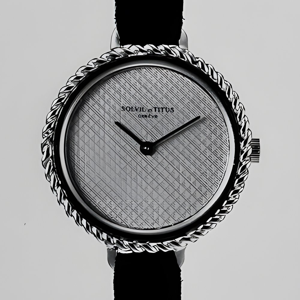 The embodiment of 1976 watch styling trends : generous proportions and thin profile, a broad dial with slim torsade-motif frame. In goldplate with steel back, gilt dial. (SOLVIL et TITUS)