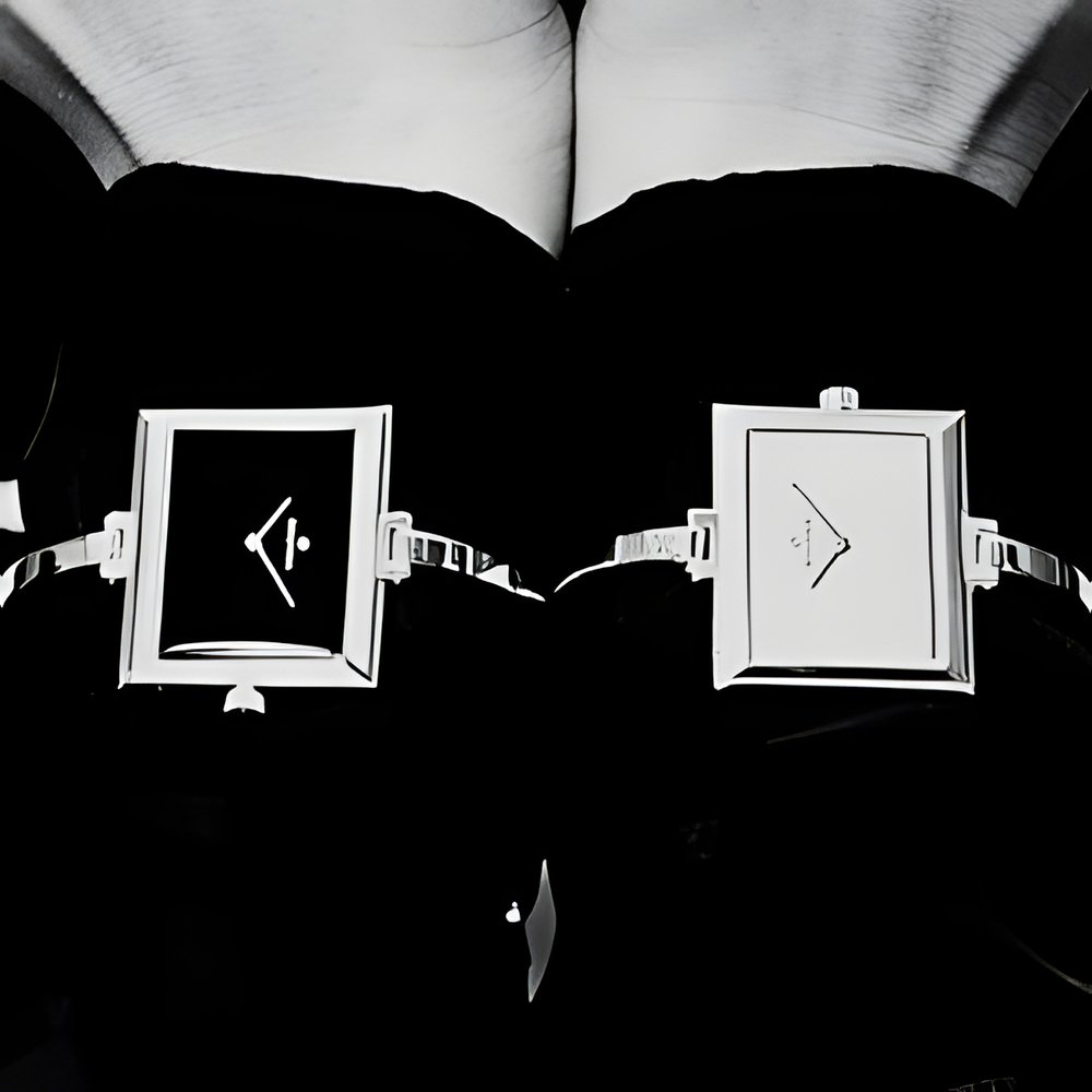 Angled lines are back, here in 0. 925 silver. Dials are black and silvered and the bands are adjustable. (GOLANA)