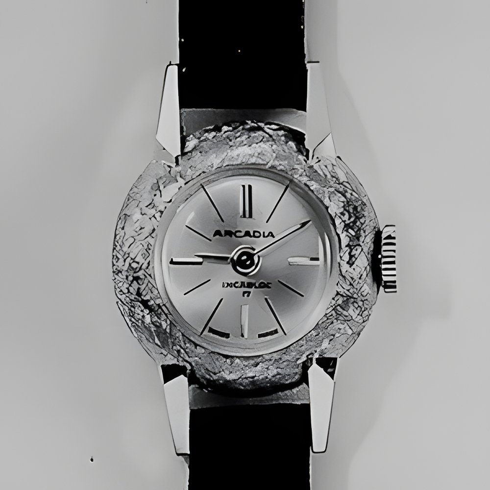 Accuracy in miniature in this very small ladies watch in 1 8 et gold. The large bezel in Tuscan gold makes a pleasing contrast with the highly polished surfaces of the lugs. (ARCADIA)